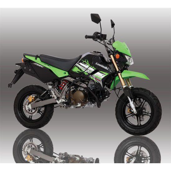Different shop equals different price and different services. Kawasaki KSR 110 PRO is motorbike manufacture in Thailand and designed for south Asia market. Mini motard based on the entrance enduro machine KLX 110The engine mounted on the pipe backbone frame without the under loop adopts the bottom neutral 4 speed mission of the automatic centrifugal clutch which is an air-cooled single cylinder of an OHC 2 valve head which does not require clutch operationSwing arm with.